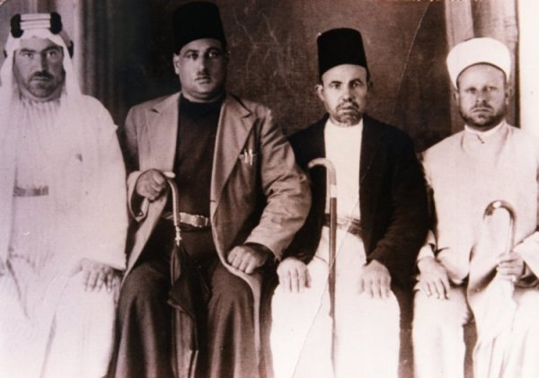 في أثناء ثورة فلسطين الكبرى 1936-1939 ميلادي وهم من اليمين المرحوم الشيخ سعيد حمدان الاغا خطيب وامام المسجد الكبير،