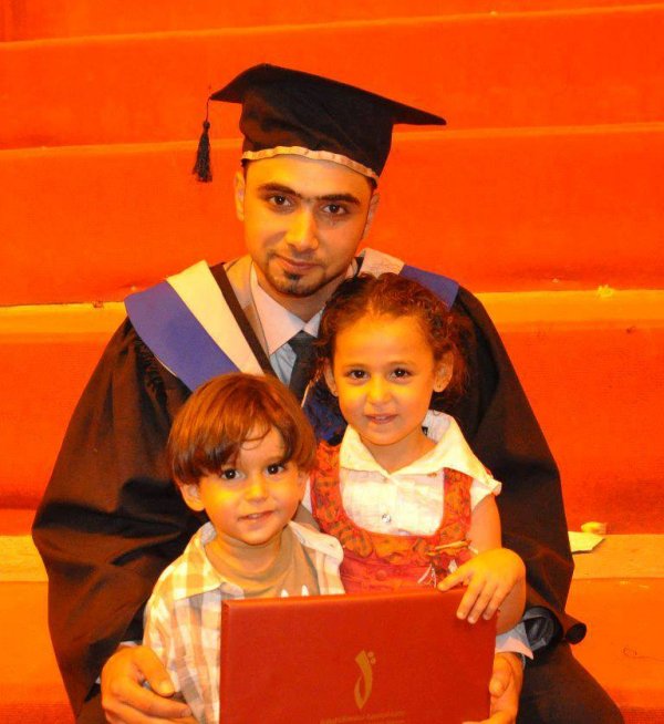 الخريج وإبنا شقيقته (مرح علي الأغا وشقيقها محمد)