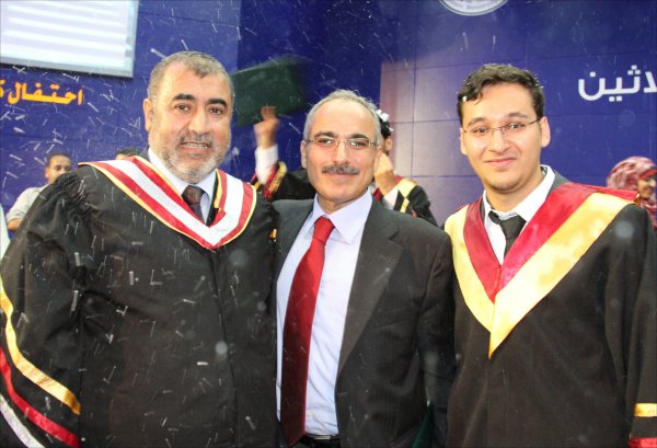 د. مفيد المخللاتي وزير الصحة، د. عمر فروانة(عميد كلية الطب)، الخريج