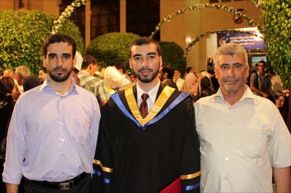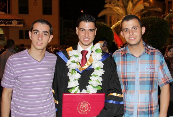 الخريج يتوسط شقيقيه أ. عاهد، خليل