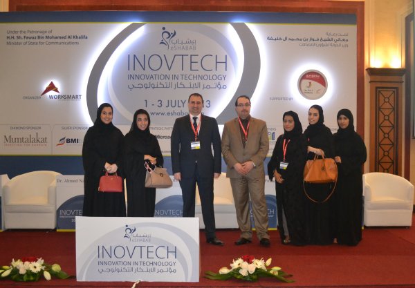 صورة جماعية للمشاركين في مؤتمر الابداع التكنولوجي من الجامعة الملكية للبنات– مملكة البحرين
