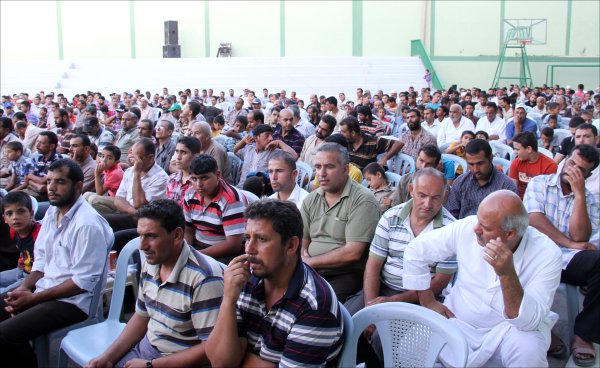 وقال اللوح: "إننا على أرض غزة العزة، إذ نجتمع اليوم في هذا اللقاء والإفطار الجماعي ضمن موائد نسائم الخير، لننظر بعين القلق لما يجري لإخواننا المنكوبين على أرض سوريا الذين يذبحون ذبح الخراف، ويقتلون أشد التقتيل، لا لشيء سوا لأنهم مسلمون موحدون بالله ورسوله".