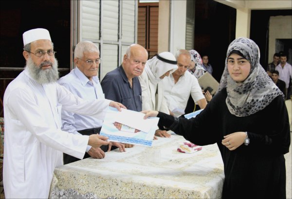 الشيخ ناجي عنتر الأغا يتسلم شهادة كريمته صبحية