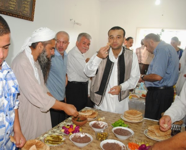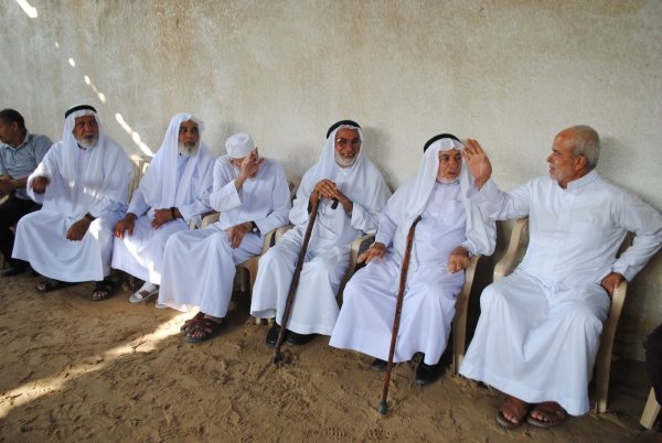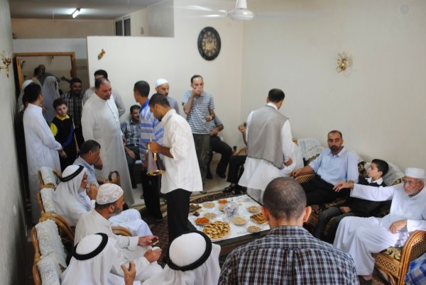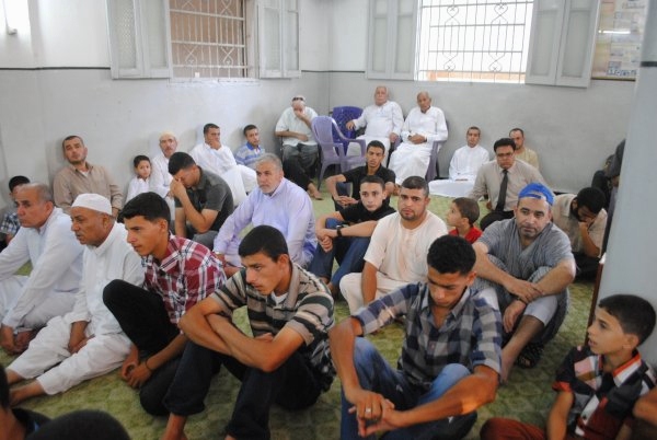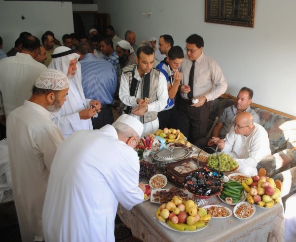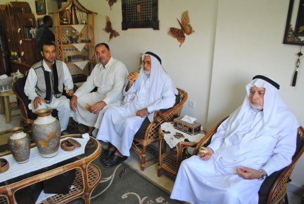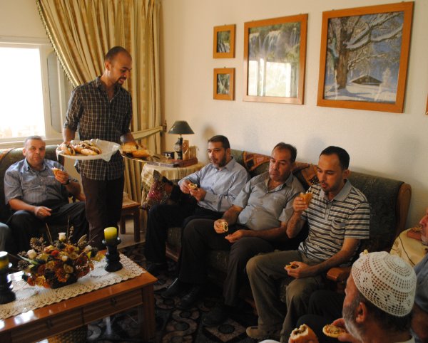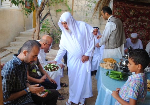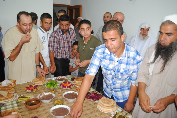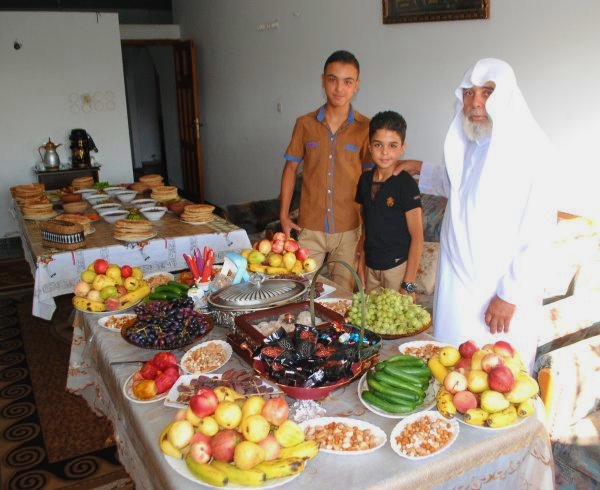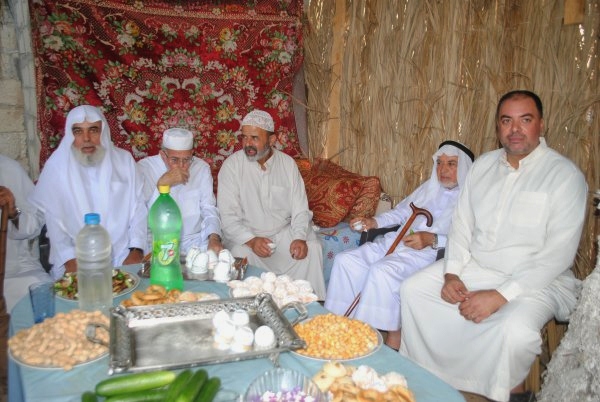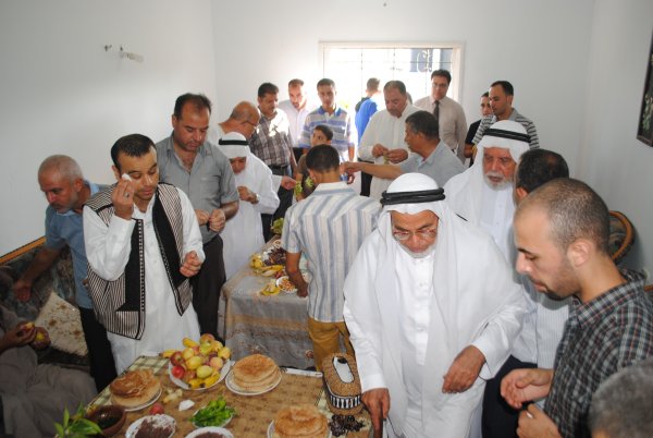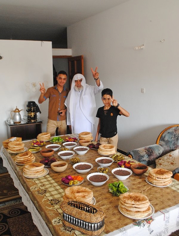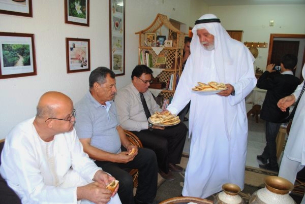 تناول وجبة الافطار في منزل الحاج صلاح عانم الأغا: الحاج عيسى مسعود الأغا وشقيقه الحاج أمين،
