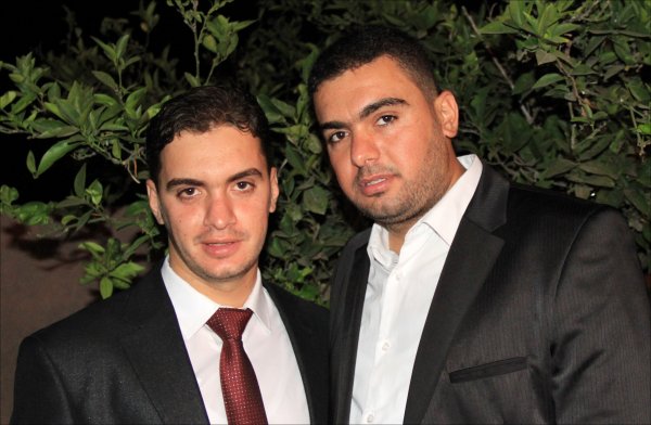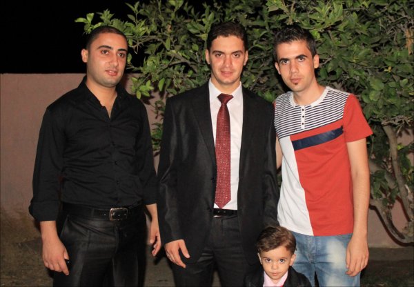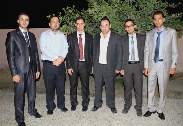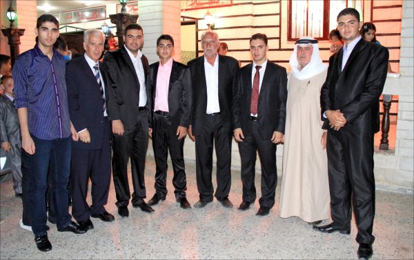 محمود(شقيق العريس)، والد العروس، العريس ووالده، أحمد وجهاد (شقيقا العريس)،