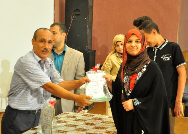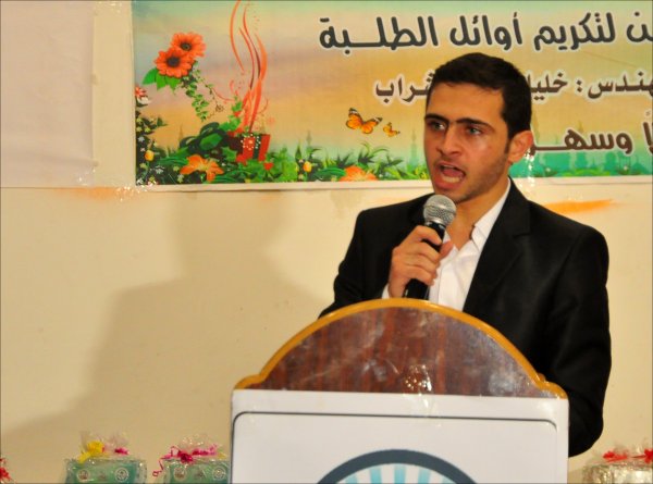 وتلا الطالب : آيات عطرة من القران الكريم ، ورحب أ. محمد موسى شراب عريف الحفل بالحضور وهنأ المتفوقين بحصولهم على الدرجات العليا.