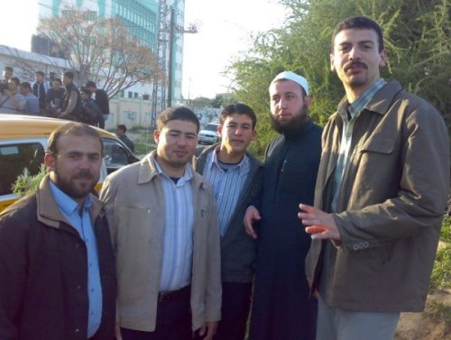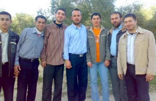 ويظهر بالخلفية جزء من مبنى الجامعة الاسلامية بخان يونس