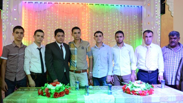 أ. محمد عبدالكريم الأغا، وأشقائه يوسف، رامي، كامل، والد العريس، العريس،