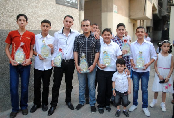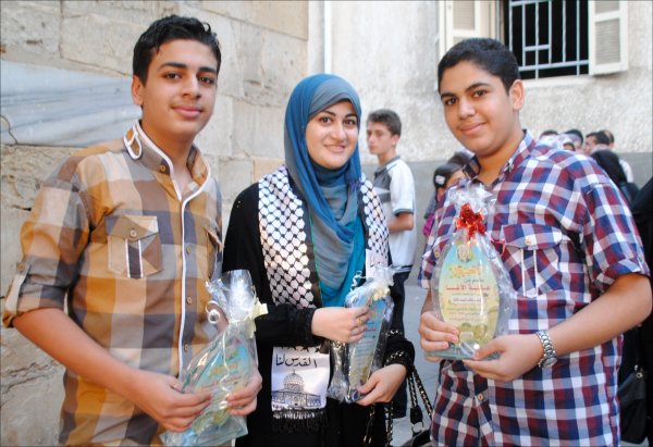 أ. هيا عدنان تتوسط إبنا خالها أحمد وعمر خالد أحمد الأغا