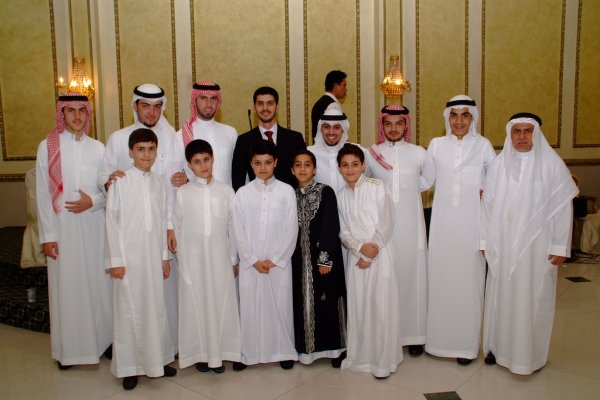 العريس يتوسط اقاربه