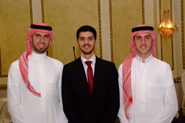 العريس يتوسط الاخوين أحمد وجاسر الأغا