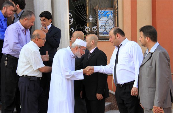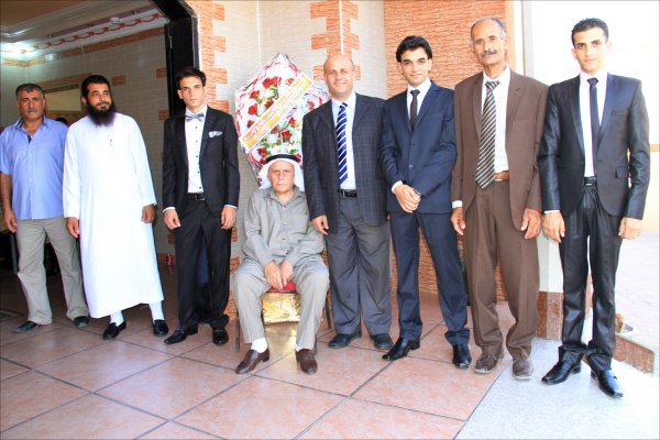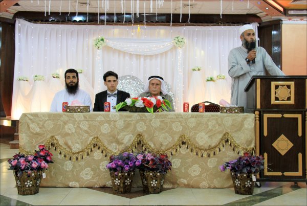 الشيخ منهل الأغا، والد العريس، العريس، والد العروس