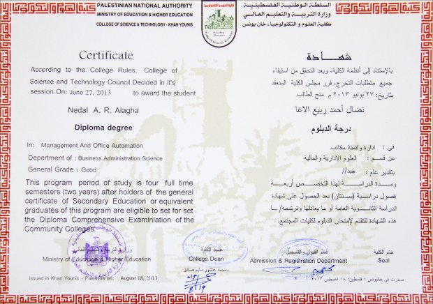 تخرج الطالب نضال أحمد ربيع الأغا في كلية العلوم والتكنولوجيا- خان يونس تخصص إدارة وأتمتة مكاتب من قسم العلوم الإدارية والمالية. وألف مبارك ..