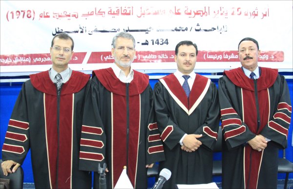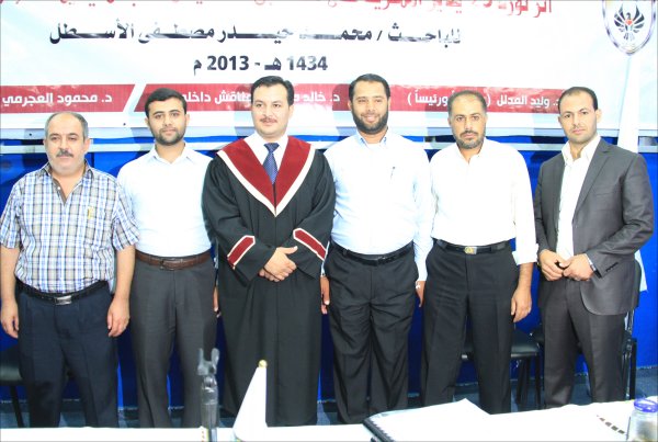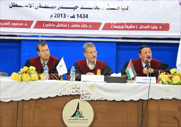 قاعة المؤتمرات- جامعة الأقصى غزة- الأربعاء الموافق 03-10-2013، الباحث محمد حيدر مصطفى الأسطل ينال درجة الماجستير في العلاقات الدولية والدبلوماسية بعنوان: