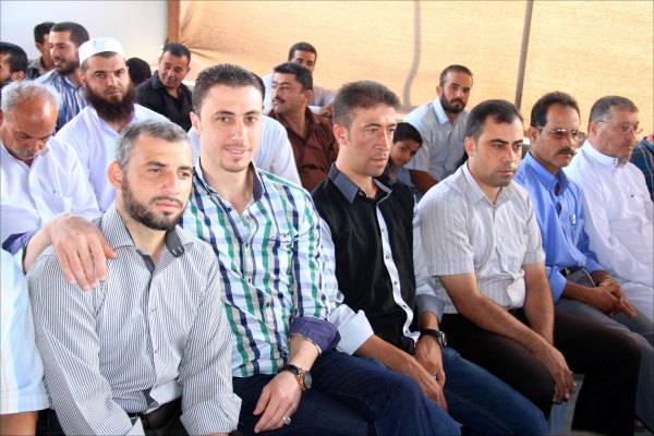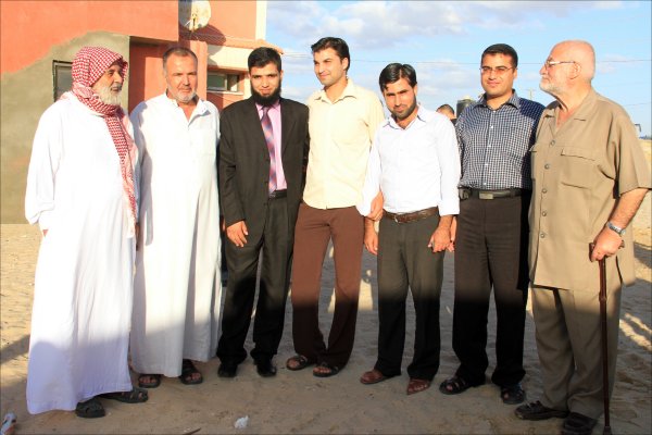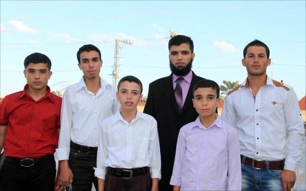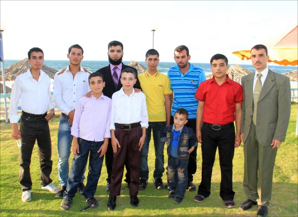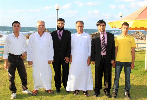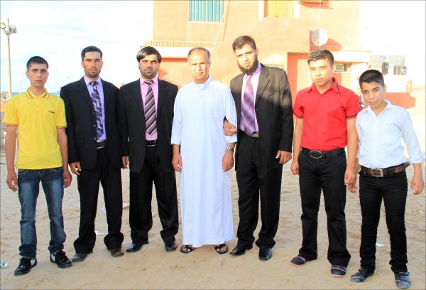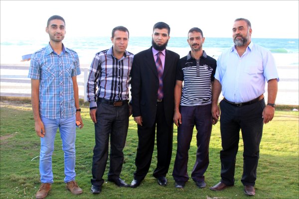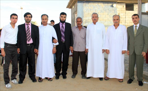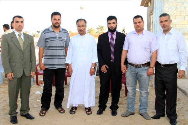 أ. بلال الأغا ووالده، الحاج عمر(عم العريس)، والد العروس، العريس ووالده، أ. علاء(شقيق العريس)