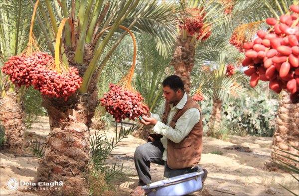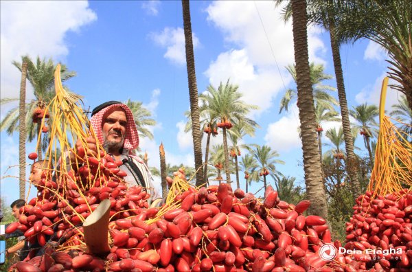 تشهد المناطق الزراعية بقطاع غزة كمية وفيرة من البلح، ويعد موسم البلح مصدر رزق لعدد كبير من المزارعين الذي ينتظرون موسمه بفارغ الصبر، ليتسنى لهم ممارسة هواياتهم المفضلة في جنيّ المحصول. وهناك أنواع عديدة من البلح منها: الحياني، والأصفر، وبنت عيش، وجعبوري، وأصبع العروس، والتمر، "البلح الحياني" هو المتداول في السوق بكثرة.