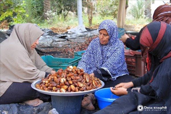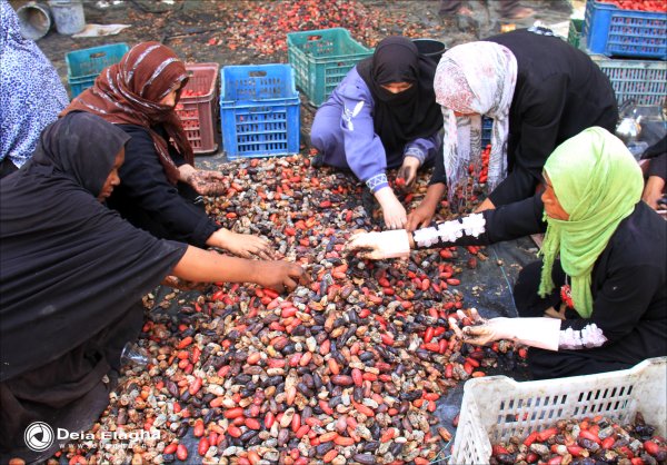 سيدات من يقمن بفرز الرطب عن البلح