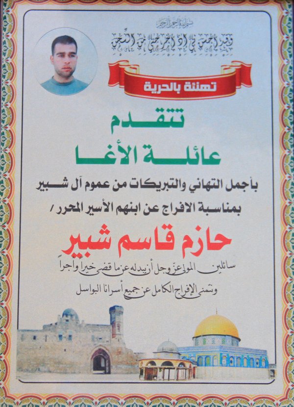 قام وفد من عائلة الأغا عصر اليوم الجمعة الموافق 01-11-2013 بزيارة إلى بيت الأسير المحرر حازم قاسم شبير، وتقديم التهنئة له بمناسبة الإفراج عنه قبل أيام .