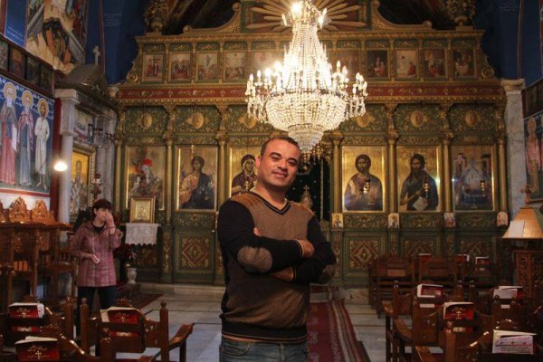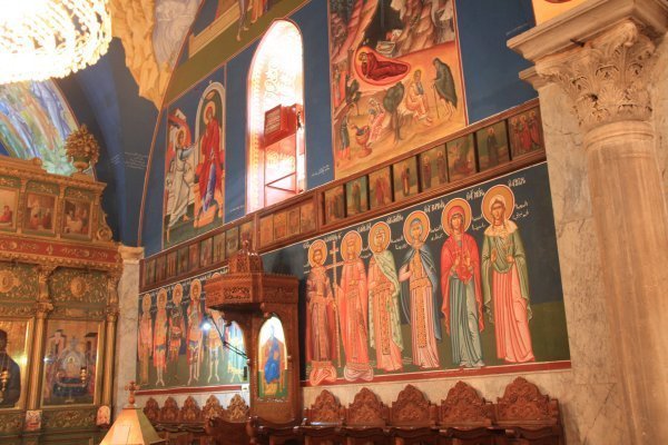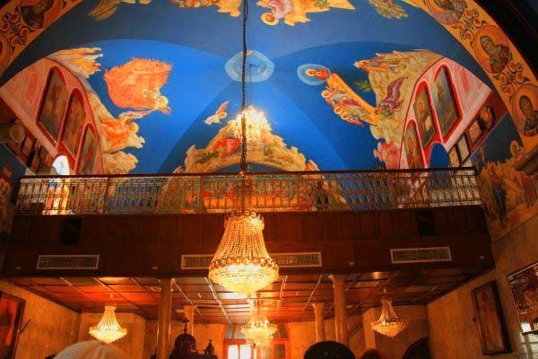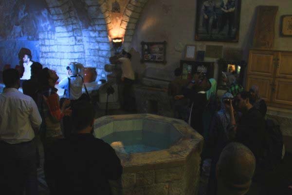 من داخل كنيسة الروم ويوجد في الخلف المغطس الخاص بتعميد الأطفال عند الولادة،