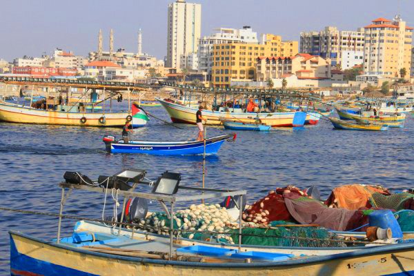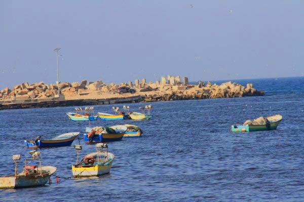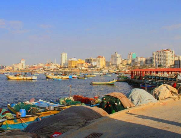 بعض المباني التى تطل على بحر غزة- الصورة من داخل حوض الميناء