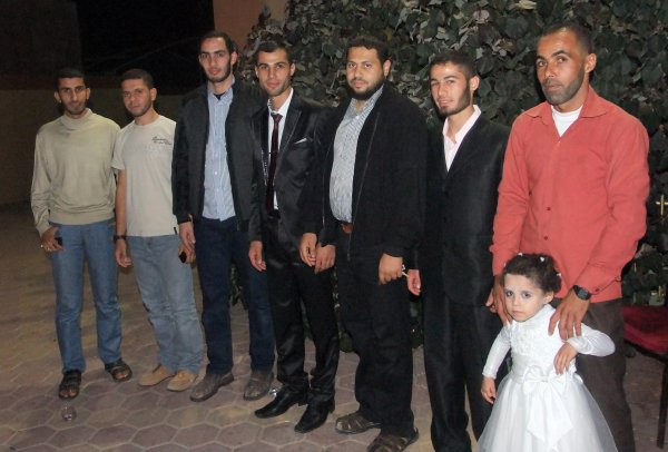 حسام(شقيق العريس)، أ. يوسف أحمد الأغا، والد العريس، العريس، أحمد(عم العريس)،