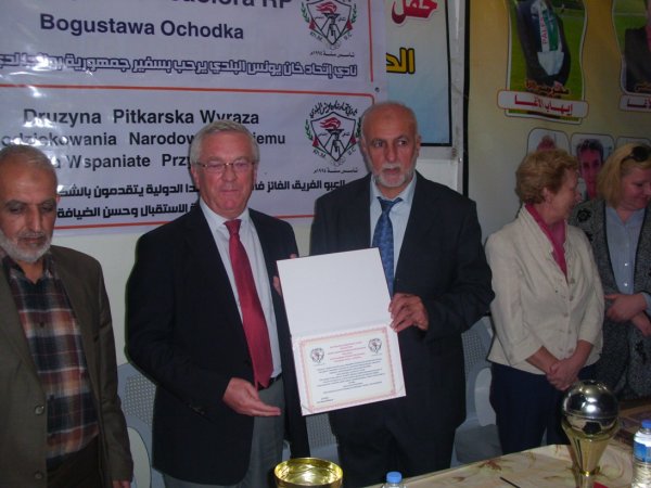 وفي نهاية الحفل قدم النادي شهادات الشكر والتقدير لرئيس جمهورية بولندا وللسفير ولجمعية الصداقة الفلسطينية البولندية، و أخذ بعض الصور التذكارية .