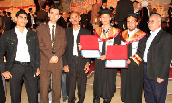 وفي نهاية الاحتفال، كرمت الجامعة أوائل الكليات، ومن ثم منح عمداء الكليات الخريجين الشهادات بعد أن أدى الخريجون قسم الخريج، وسط أجواء بهيجة وتصفيق وتهليل من الطلبة الخريجين وذويهم، وقد تضمن الخريجين مجموعة من طلبة عائلتنا.