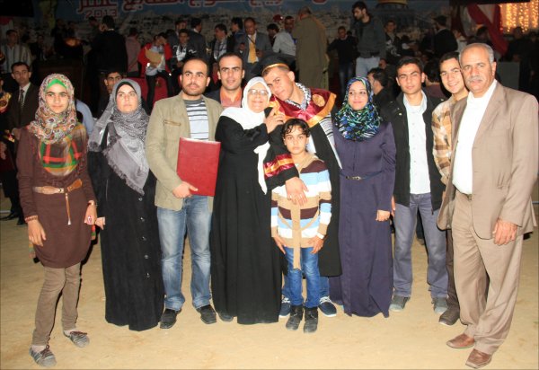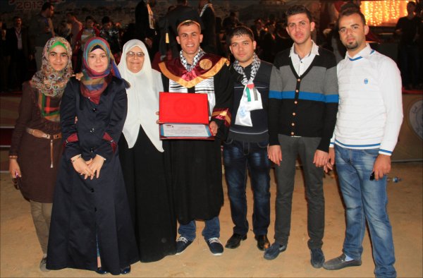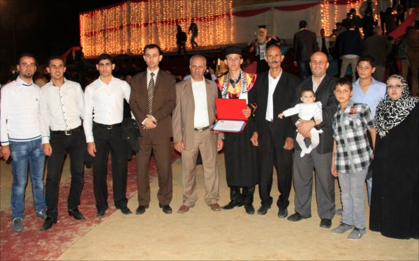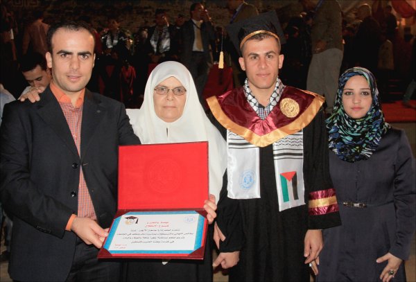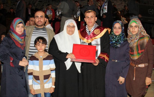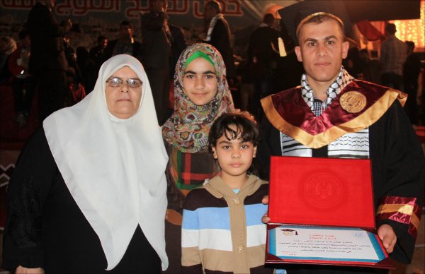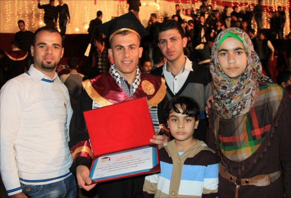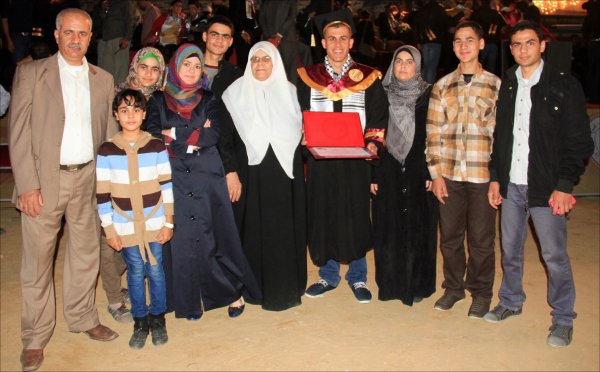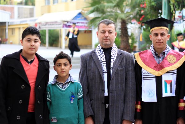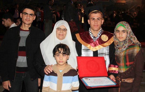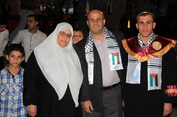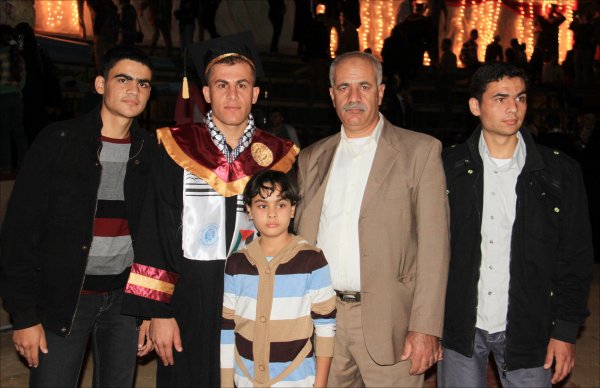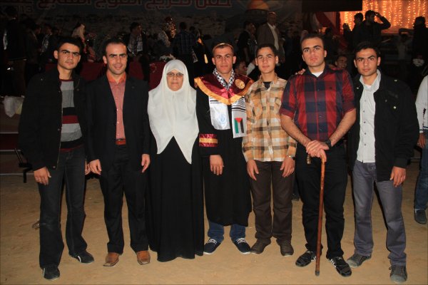 الخريج عرفات يونس ووالدته وشقائه وأبناء شقيقته