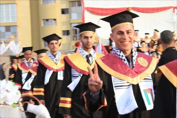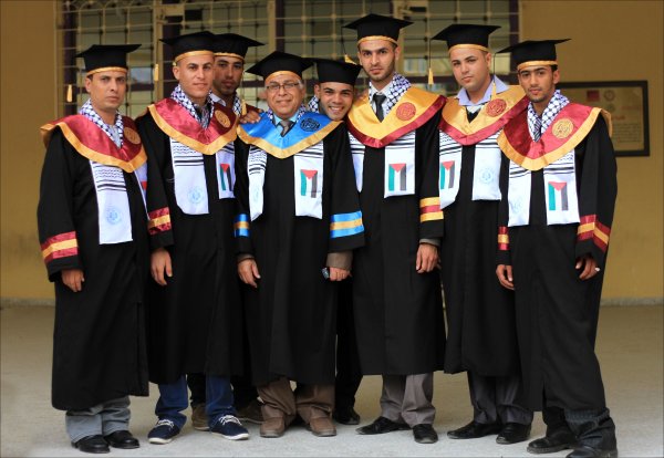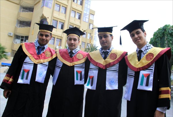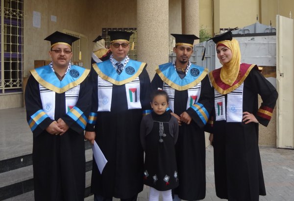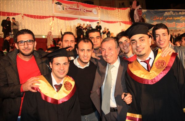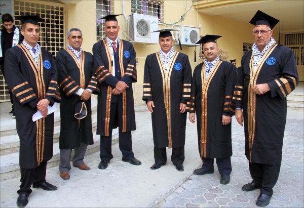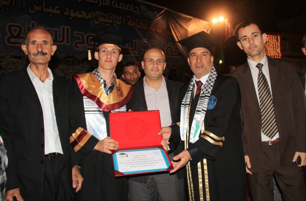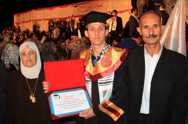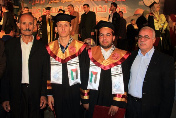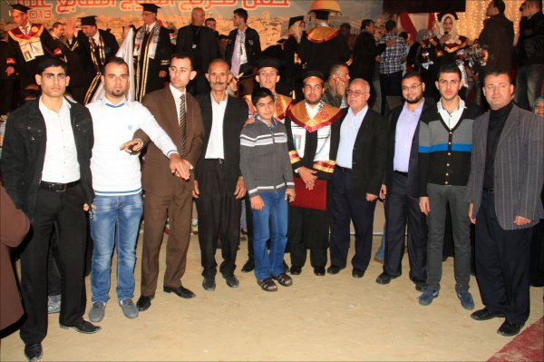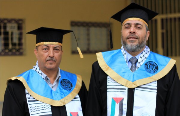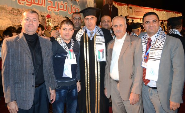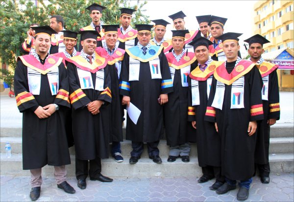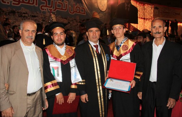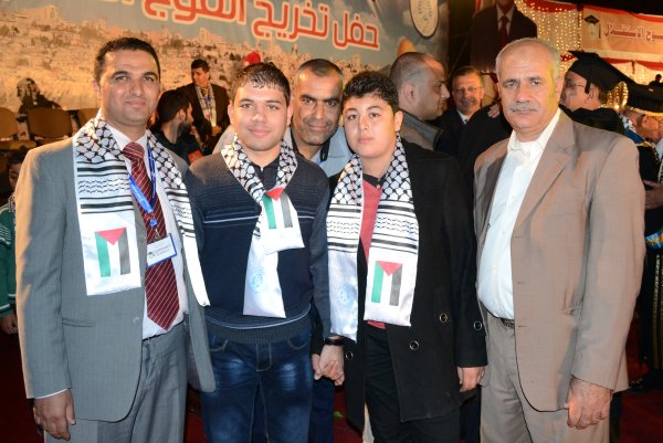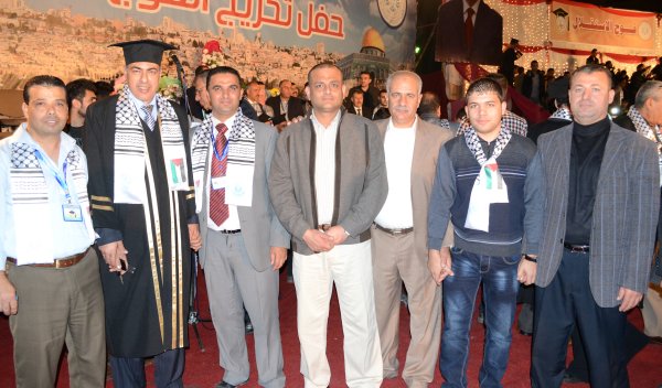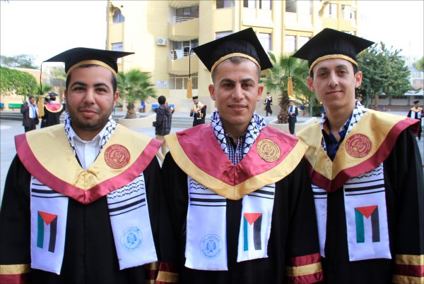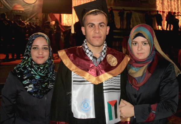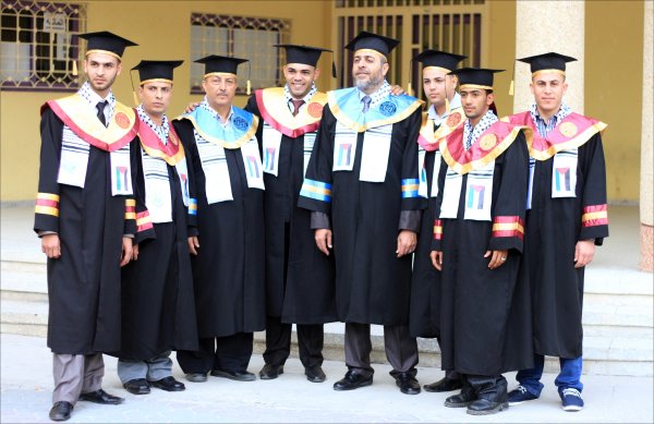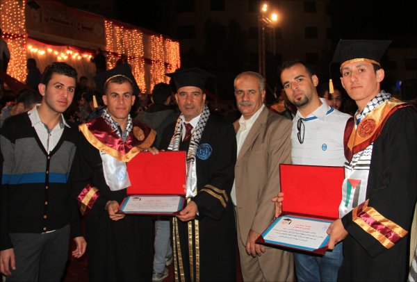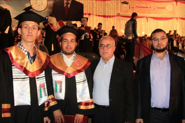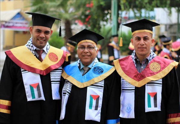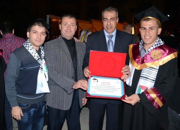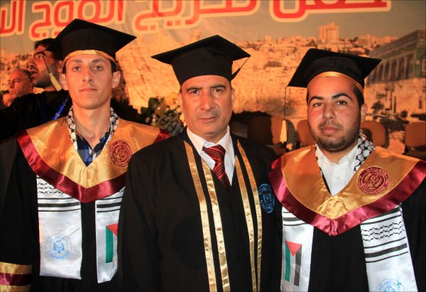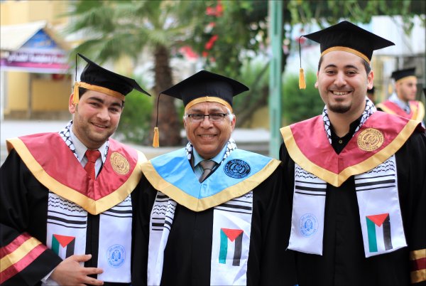 الخريجون: أحمد بسام جابر الأغا، عرفات يونس الأغا، جهاد محمد الأغا