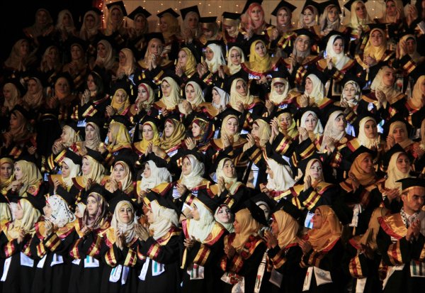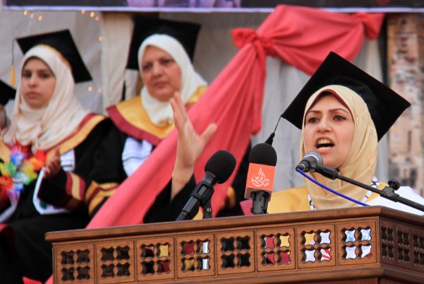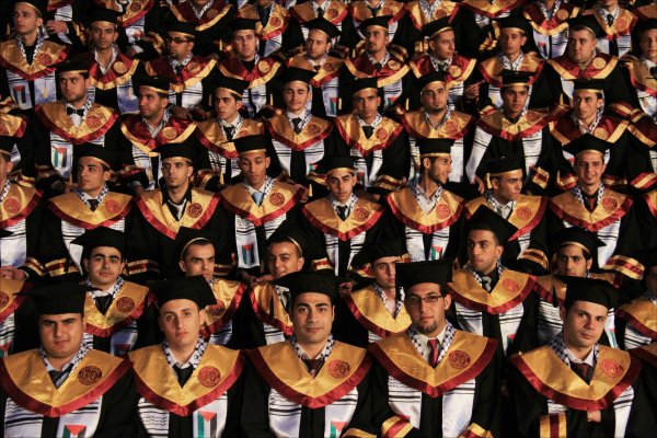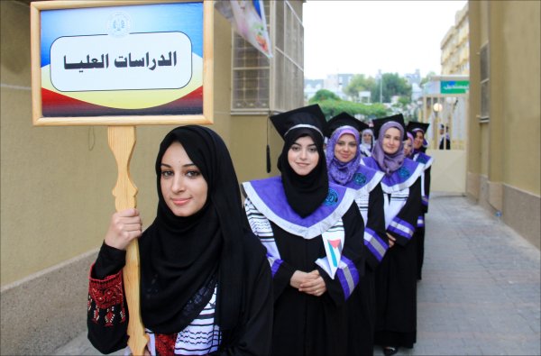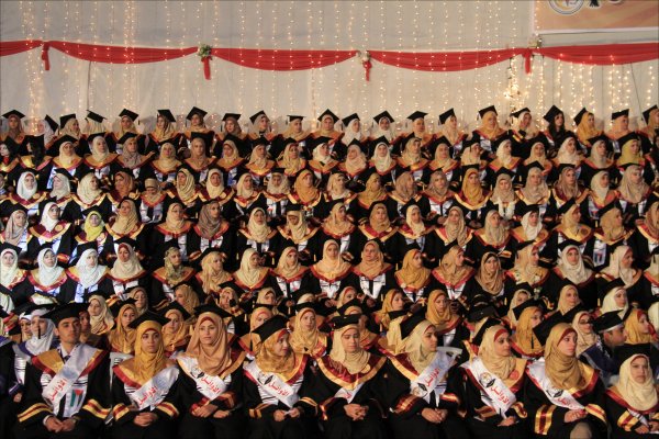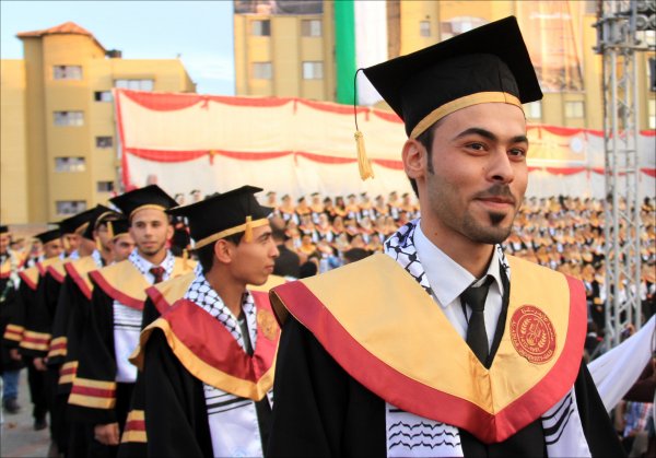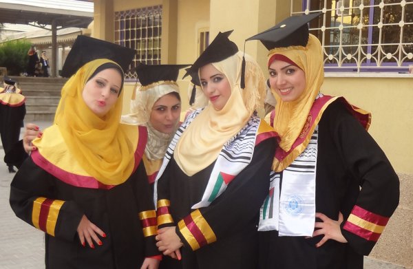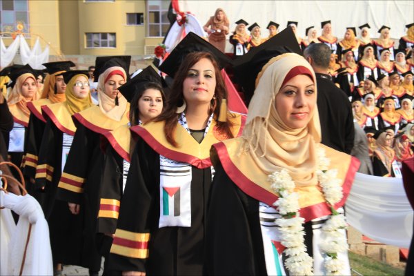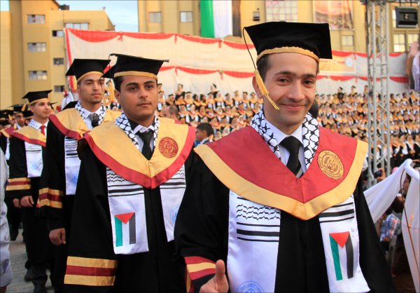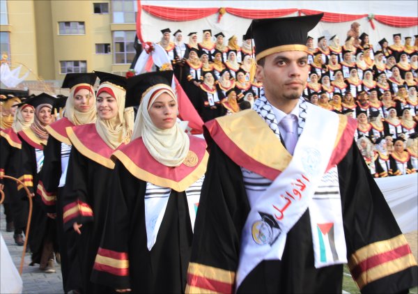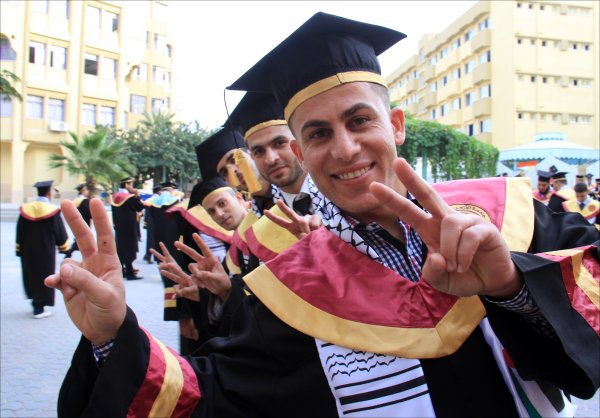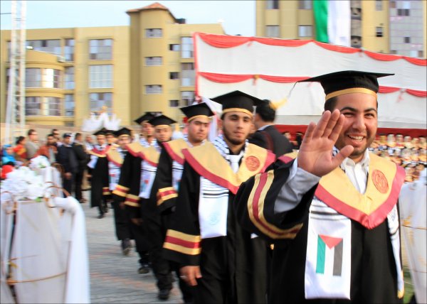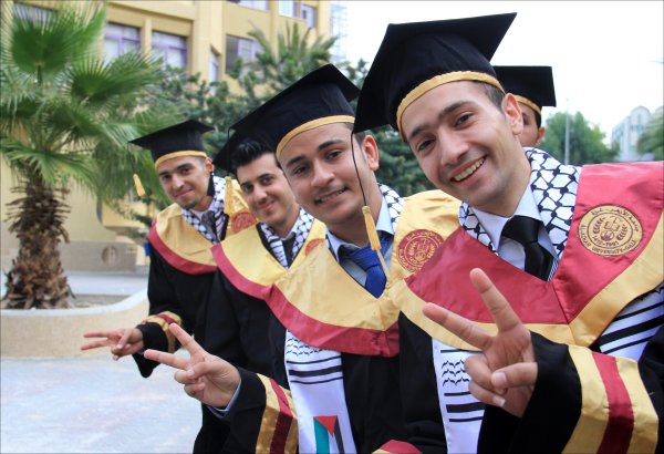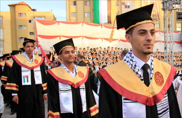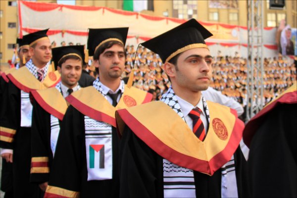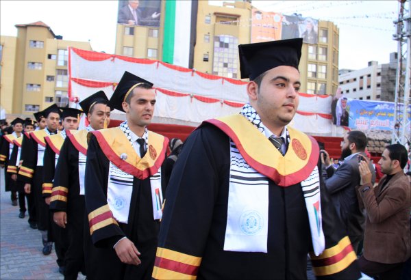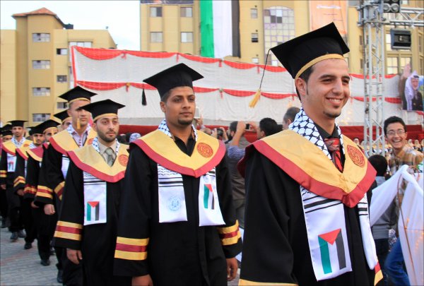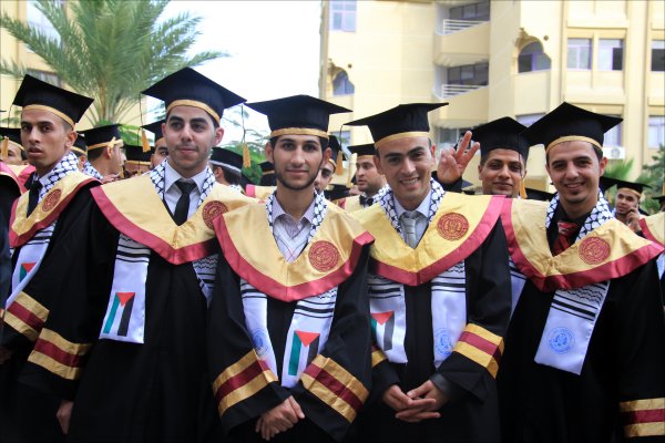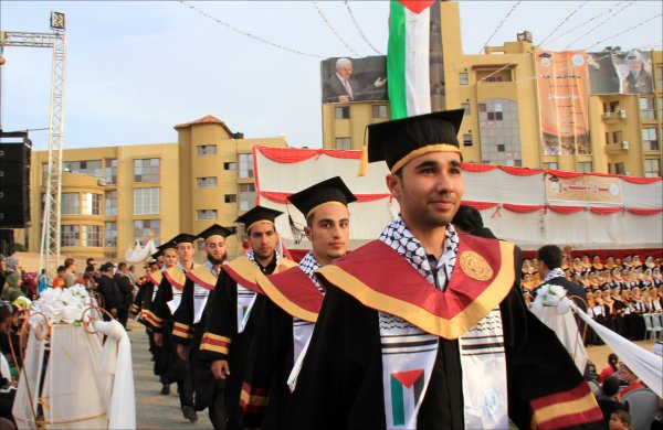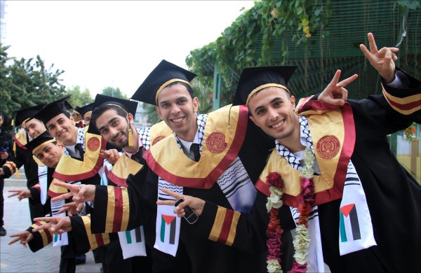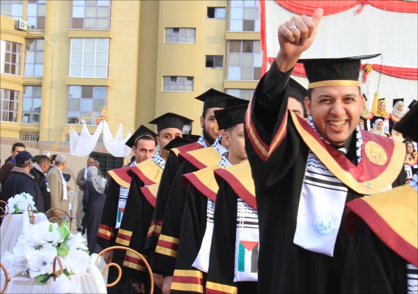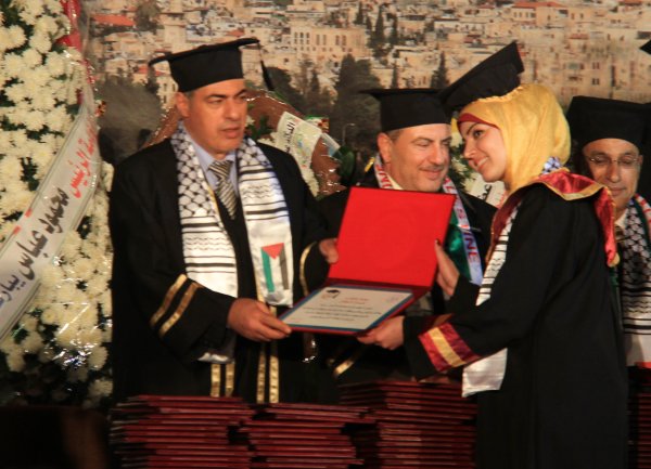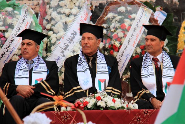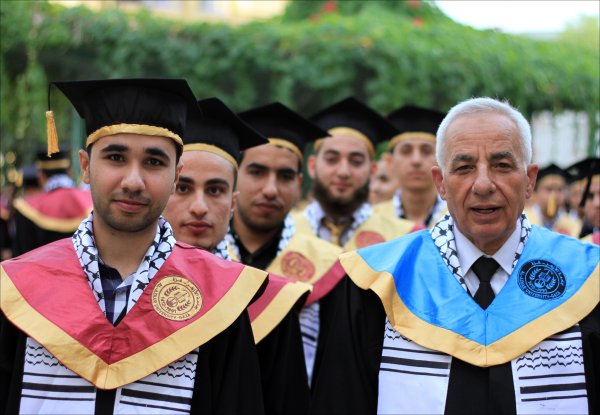 الخريجون: أحمد بسام جابر الأغا، عرفات يونس الأغا، جهاد محمد الأغا