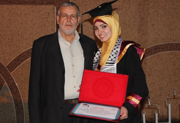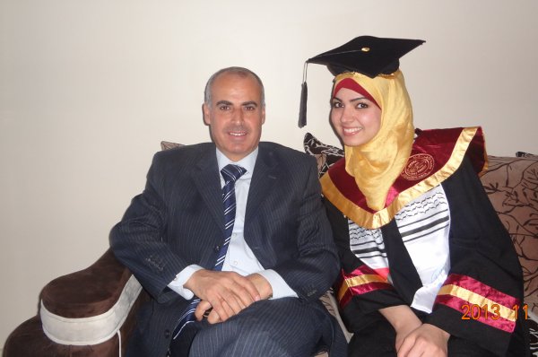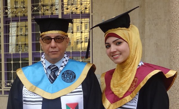 الخريجة ووالدها أ. سامي قاسم الأغا