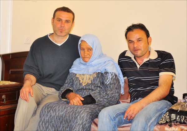 خلال فترة المرض بشهر 3-2013، مع نجليها د. وجيه وسعدي