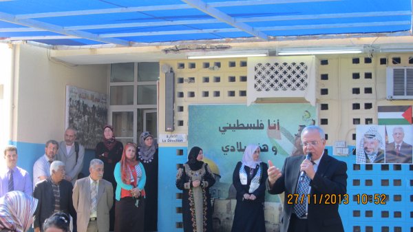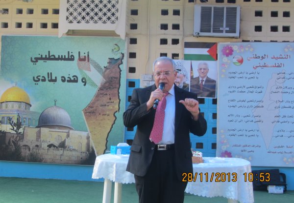 د. يحيى يضيّف الحضور في المدرسة الفلسطينية المشرف عليها