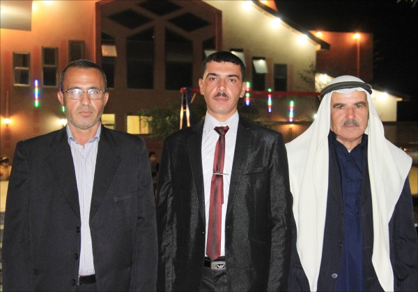 مهند محمود الأغا، يحيى زكريا الأغا، محمد عليان الأغا، والد العريس، العريس، والد العروس