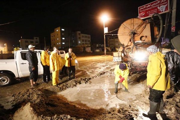 طاقم بلدية خان يونس ومتابعته للمنخفض على أرض الواقع