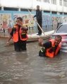 شرطي يحمل سائق سيارة قد علق بالمياه