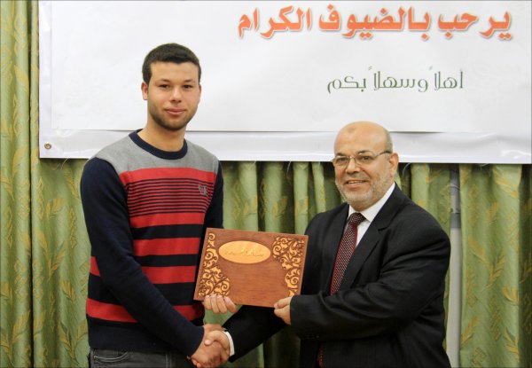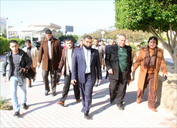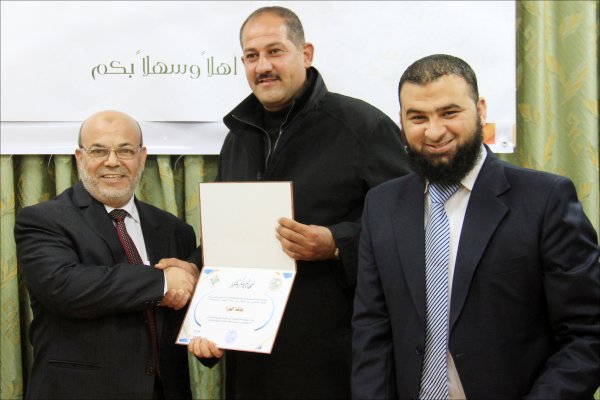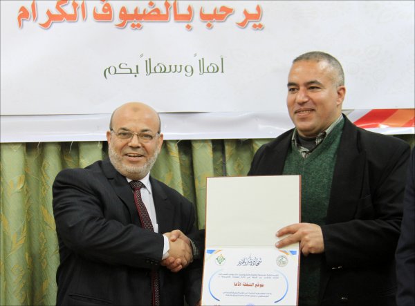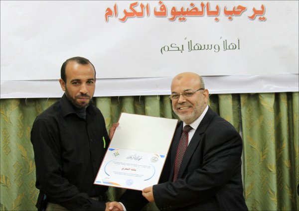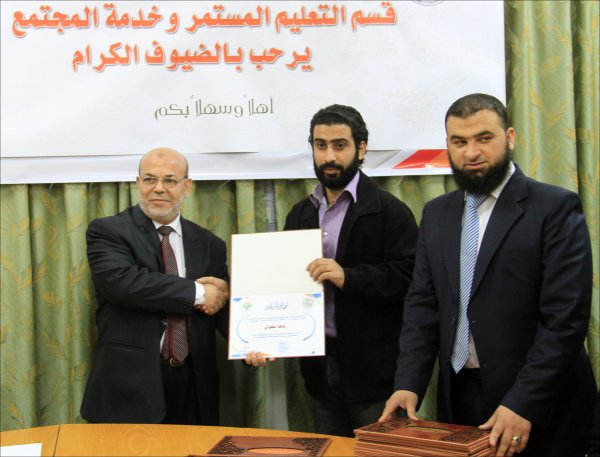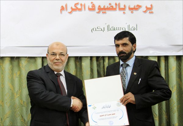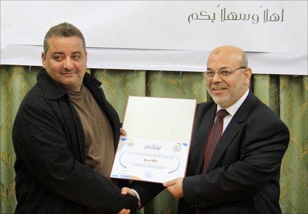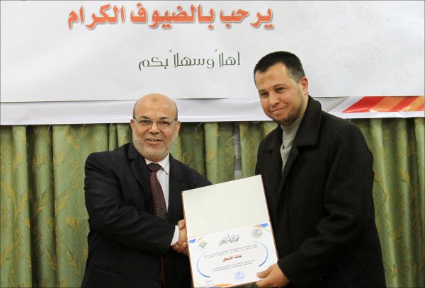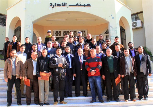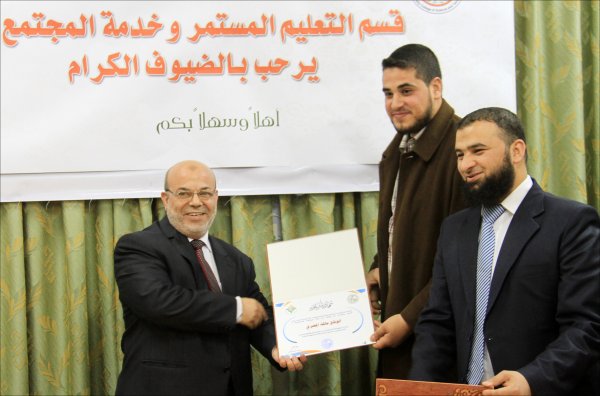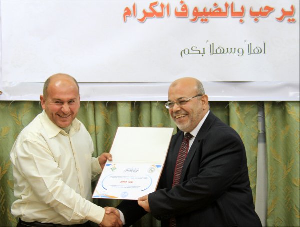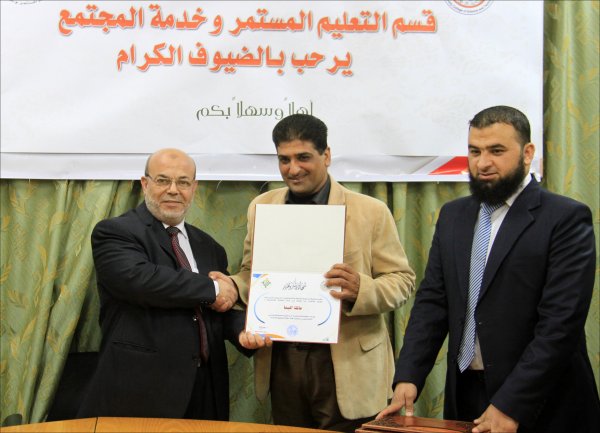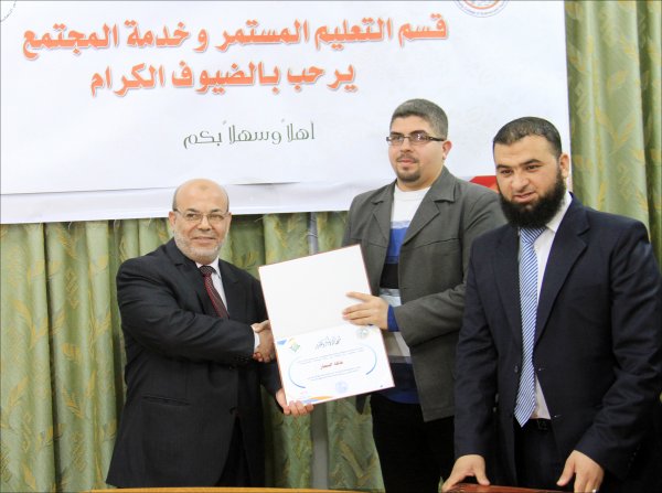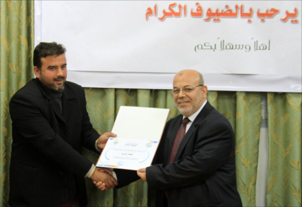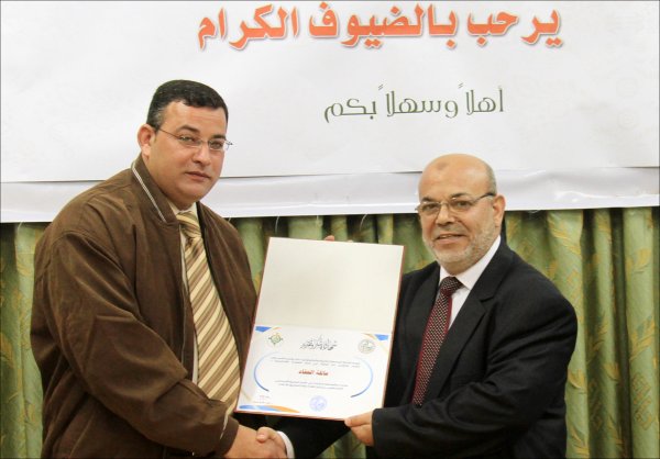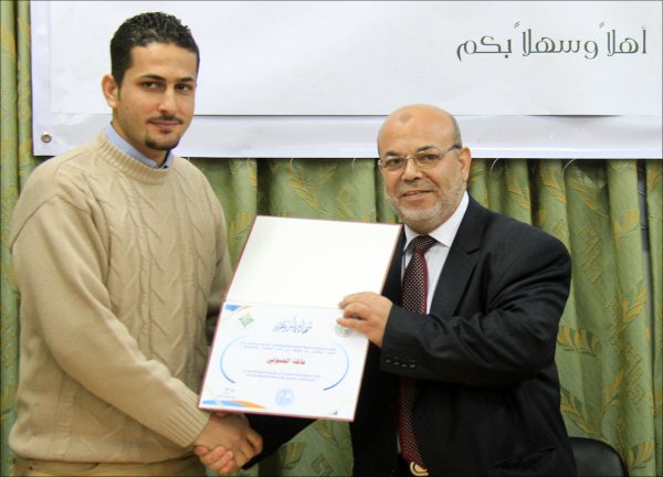 أ. ياسر محمد الأغا(موقع النخلة)، م. محمود الفرا، عميد الكلية د. محمد صادق عاشور،