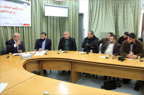 قاعة الإجتماعات- الكلية الجامعية للعلوم والتكنولوجيا- الأحد الموافق 22-12-2013، نظم قسم التعليم المستمر وخدمة المجتمع بالكلية الجامعية للعلوم والتكنولوجيا لقاء تكريمي لمدراء المواقع الإلكترونية لعائلات خان يونس وذلك لتعزيز التعاون المشترك وفتح آفاق تعاونية جديدة على مختلف المجالات، بحضور عميد الكلية د محمد صادق، أ. محمود الفرا رئيس قسم التعليم المستمر وخدمة المجتمع، بالإضافة إلى عدد من مدراء المواقع الإلكترونية لعائلات محافظة خان يونس.