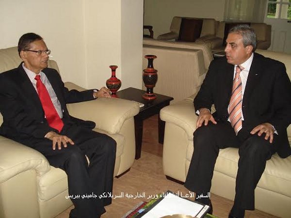 إلتقى د. أنــور الأغــا سفير دولة فلسطين لدى سريلانكا و المالديف، عميد السلك الدبلوماسي العربي و الأجنبي، مع البروفيسور جاميني لاكشمان بيريس، وزير الشؤون الخارجية في جمهورية سريلانكا، و عدد من المسؤولين السريلانكيين، و ذلك في مقر وزارة الخارجية السريلانكية في العاصمة كولومبو.