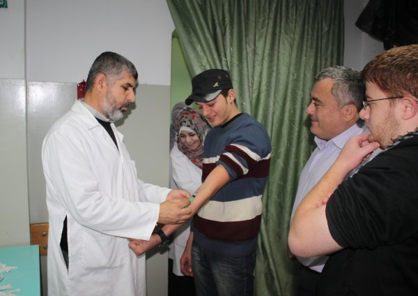 وكان في إستقبال أبناء العائلة، الدكتور زكريا الأسطل أبو يحيى، وشارك مع الطاقم الطبي في متابعة المتبرعين، وكما قام بتعريفهم على آلية سحب الدم والمراحل التي تمر بها عملية التبرع، من بداية دخول المتبرع المختبر وآلية الفحص والتبرع ومن ثم كيفية التعامل مع وحدات الدم وحفظها بطريقة طبية تحفظ سلامتها.