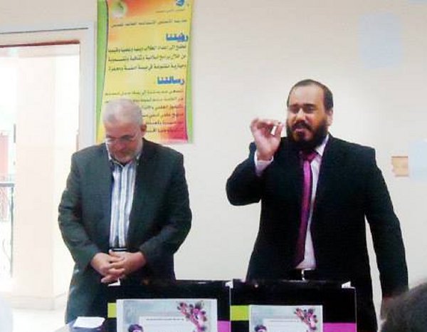 كما قام الأستاذ سامي الشامي منسق اللغة العربية بالمدرسة بمنحهما أيضا شهادة التقدير وتقديم هديا رمزية باسم قسم اللغة العربية اعترافا بفضلهما وبذلهما وإنجازاتهما .. وقد بدأ الحفل بتلاوة مباركة لفضيلة الشيخ أحمد فاضل غندور، ثم تحدث الأستاذ سامي الشامي منسق اللغة العربية مستعرضا سيرة المعلمين الجليلين وتفانيهما في العمل وإخلاصهما وأنهما نموذج صادق للمعلم الرباني صاحب الرسالة العظمى، مستشهدا بالآيات الكريمة والأحاديث النبوية الشريفة وأبيات الشعر التي تحث على تكريم أهل الفضل والعلم .. ثم تحدث سعادة المربي الفاضل مدير المدرسة الشيخ محمد موفق لطفي مثنيا على المعلمين وأن المدرسة تعقد هذا الاحتفال وفاء منها وتقديرا لدور كل معلم مخلص يستشعر أهمية دوره ورسالته ليحصل له الأجر والثواب الكبير في الدنيا والآخرة . . فما أعظمه من فضل وما أكرمها من رسالة . . إنني أقف أمامكم اليوم لأعلن أنها قبل أن تكون سياسةً للمدرسة في التحفيز والتكريم .. إنما هي وفاء وعرفان أمرنا به في ديننا ومالنا لا نرفع من رفعا الله وأعلى قدره " يرفع الله الذين آمنوا منكم والذين أوتوا العلم درجات .