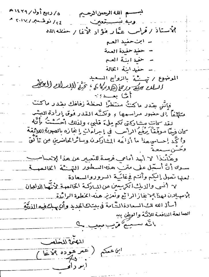 الأستاذ فراس عمار فؤاد حمدان ملاحي بدوي أحمد إبراهيم(بدوي) الأغا (أبو عمار)
