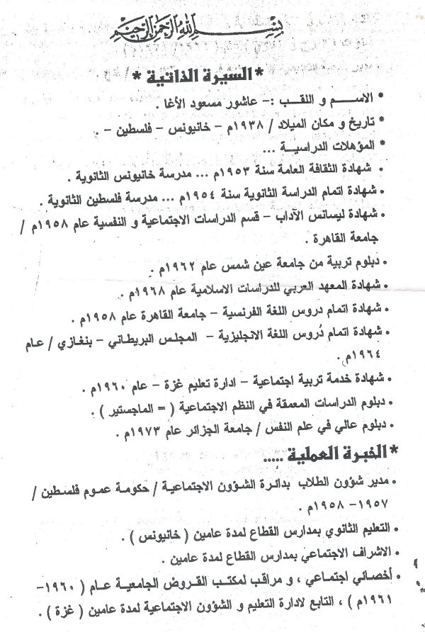 المرحوم أ. عاشور مسعود غانم الأغا (أبو مسعود)