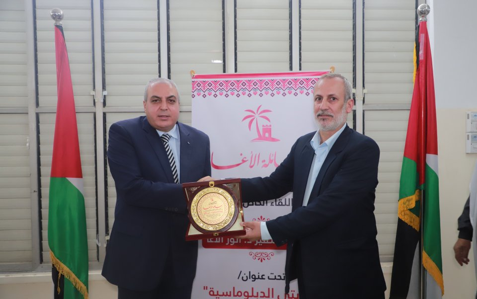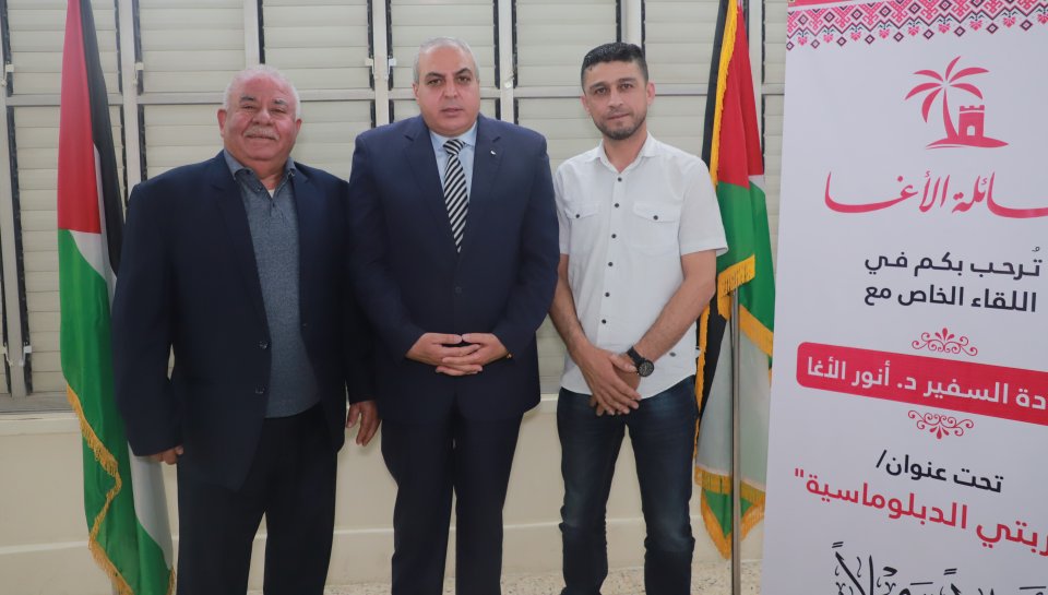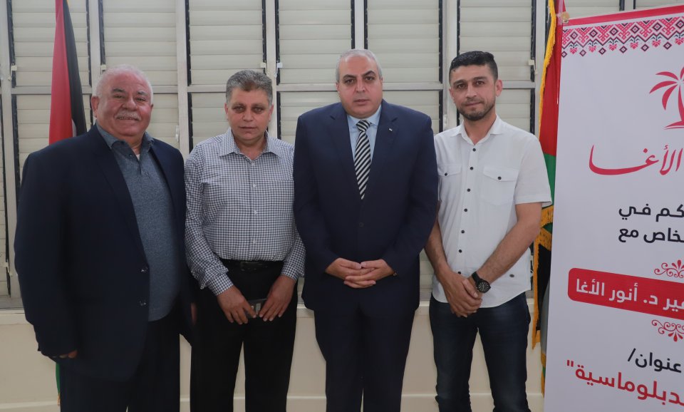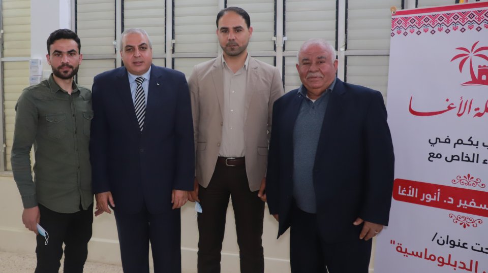 ضمن سلسلة لقاءات تجربتي، نظمت اللجنة الدائمة للاحتفال السنوي و الانشطة بعائلة الاغا لقاء خاصا مع سعادة السفير داتو الدكتور أنور الاغا، في بيت العائلة الكبير، ديوان عائلة الاغا بالقلعة، حيث حضر اللقاء جمع غفير من أبناء العائلة، يتقدمهم مختار العائلة الحاج ابو احمد اياد الاغا، و الاستاذ الدكتور ابو رمضان محمد رمضان الاغا ، و عدد من الشخصيات العائلية المرموقة، كما شهد اللقاء مشاركة شبابية واسعة، و قد أدار اللقاء أ. ممتاز رمضان الاغا، الذي بدأ بالترحيب بالحاضرين مثمنا الدور الكبير لمختار العائلة الحاج ابو احمد اياد الاغا الذي يعقد هذا اللقاء برعاية كريمة منه، ثم رحب بضيف اللقاء سعادة السفير داتو د.انور الاغا، مستعرضا طرفا من سيرته الذاتية في العمل الأكاديمي و السياسي و الاعلامي، حيث افرد مساحة أكبر للحديث عن التجربة الدبلوماسية لسعادة الدكتور انور، الذي أمضى سنوات عديدة في السلك الدبلوماسي، متنقلا بين عدد من الدول سفيرا و ممثلا لدولة فلسطين، بعد ذلك أعطيت الكلمة لضيف اللقاء سعادة السفير داتو د.انور الاغا الذي بدأ بشكر اللجنة المشرفة على هذا اللقاء و الحاضرين جميعا، ثم تناول تجربة عائلة الاغا في العمل الدبلوماسي من خلال دبلوماسييها العاملين في السلك الدبلوماسي الفلسطيني، و قد أشار سعادته إلى تجاربه في العمل الأكاديمي و السياسي و الاعلامي، ثم عرض بعض التجارب مع عدد من السفراء حول العالم، مشيرا إلى أنه عمل سفيرا لدولة فلسطين في ستة دول، هي، سريلانكا، و تايلاند، و الفلبين، و بروناي، و المالديف و ماليزيا، منوها إلى المكانة المتميزة التي تحتلها الدبلوماسية الفلسطينية في كثير من الدول، الأمر أهلها لتلعب دورا أكثر فاعلية على مستوى العالم، دعما للقضية الفلسطينية و خدمة لشعبنا الفلسطيني الأبي. حيث أشار إلى حصوله شخصيا على لقب داتو أثناء عمله سفيرا في ماليزيا و هو لقب ملكي يعطى للشخصيات الأكثر أهمية و تأثيرا، و قد أشار سعادته إلى بعض الشروط و المؤهلات و المواصفات التي ينبغي أن تتوفر في الدبلوماسي ليكون أكثر قدرة على أداء دوره، و منها، أنه يفضل في الدبلوماسي أن يجيد لغة البلد التي يعمل فيها، و أن يتمتع بدرجة من المصداقية لدى الدولة التي تستضيفه، كما أن على السفير أن يكون مثقفا واسع الاطلاع في المجالات المختلفة، و أن يحرص على التعلم من تجارب السابقين، و أن يستخدم اللغة الأقرب إلى من يخاطبهم.
