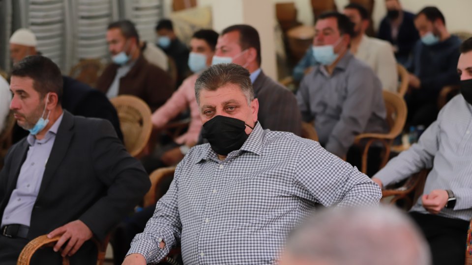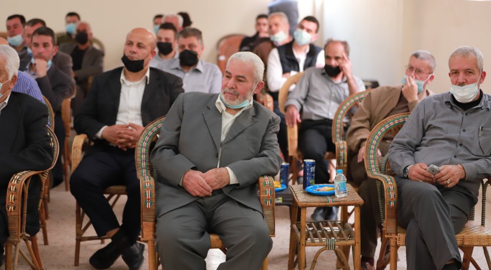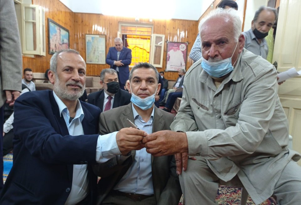 ديوان عائلة الاغا_على هامش لقاء سلسلة " تجربتي ", الحاج ابو غسان، حافظ الاغا، يهدي مختار العائلة الحاج ابو احمد اياد الاغا قلما من نوع " باركر "، عمره اكثر من اربعين سنة.