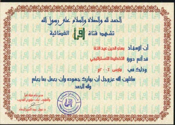 المؤهل: دكتوراه في الاعلام من لندن 2004