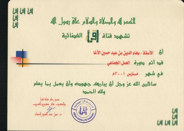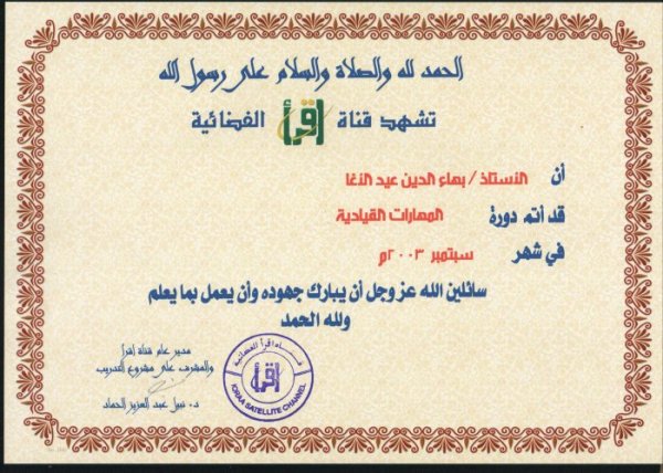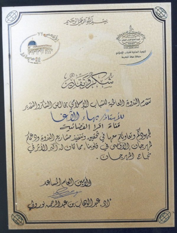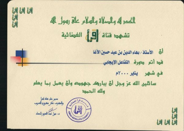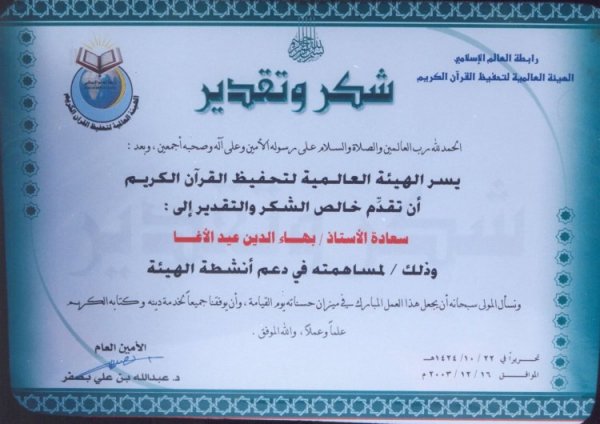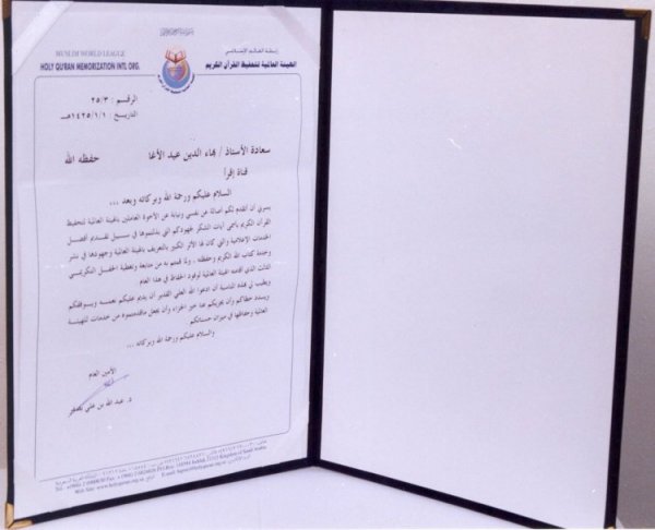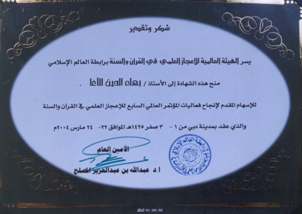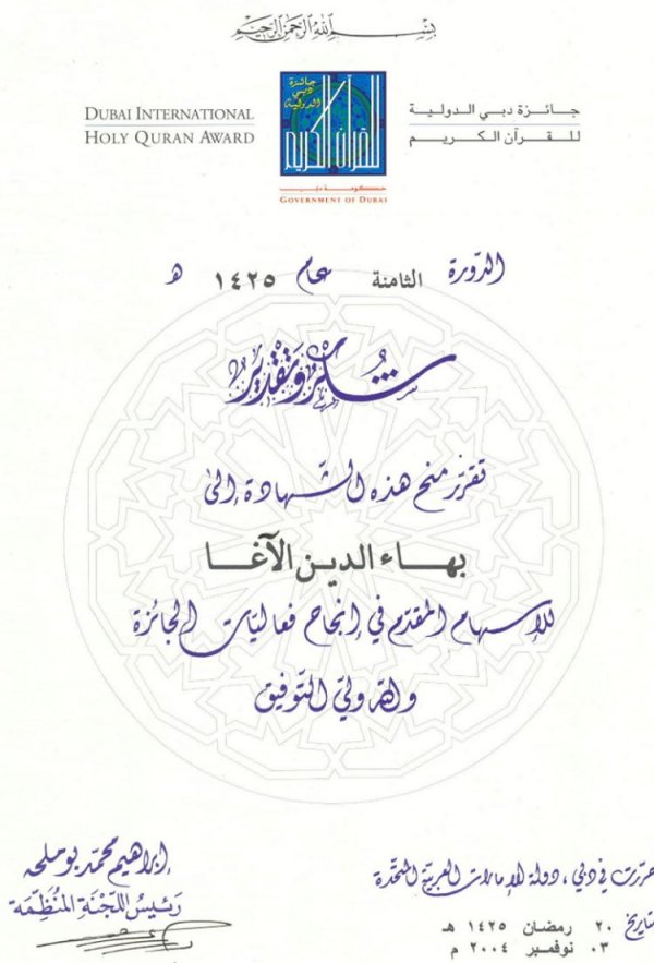 - شهادة من جائزة دبي الدولية للقرآن الكريم