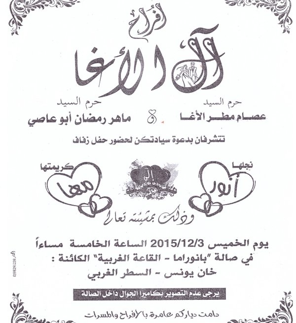 الخميس 03-12-2015 الساعة الخامسة مساءا في صالة بانوراما الغربية خان يونس السطر الغربي